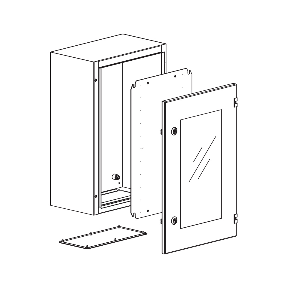 | Комплект постачання: | корпус, двері із замком, монтажна панель, панель кабельного введення, ключ, упаковка |