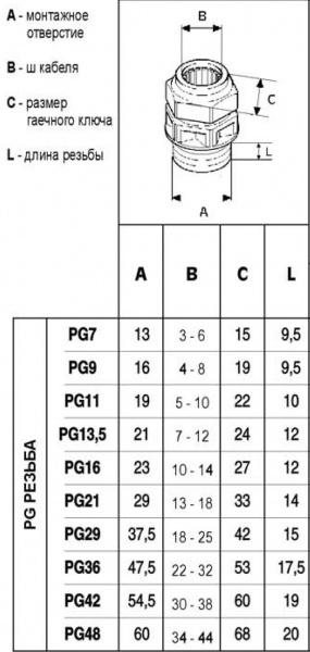 Опис | PG резьба |