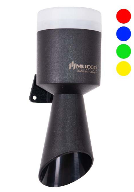 Турецький виробник Mucco пропонує альтернативу звичайним світловим сигналізаторам – світлосигнальні пристрої зі світлодіодами RGB SMD LED, які можуть світитися різними кольорами. Ці моделі будуть корисні у випадках, коли з якихось причин неможливо встановити кілька одноколірних маячків або колону з декількох модулів різного кольору. Корпуси пристроїв виконані з ABS-пластику, лінзи – з полікарбонату. Режими світіння і мелодії сирени (у моделях, де вона є) обираються кнопками під лінзою, колір – підключенням відповідного провода. Всі маячки і сирени мають ступінь захисту від пилу і вологи IP65, а також стійкі до УФ-променів.
