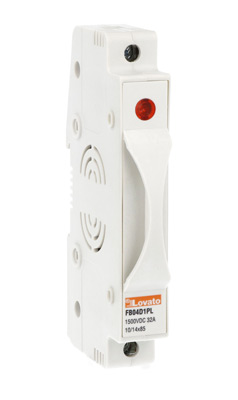 Компанія LOVATO Electric розпочала випуск нових тримачів запобіжників для фотовольтаіки на напругу до 1500 вольт постійного струму (DC). Нові тримачі запобіжників серії FB04 встановлюються на DIN рейку 35 мм. Для сигналізації спрацювання запобіжника пропонується версія з індикатором.