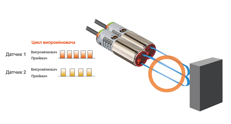 Змінює цикли випромінювання датчиків, що дозволяє встановлювати декілька датчиків близько один до одного.