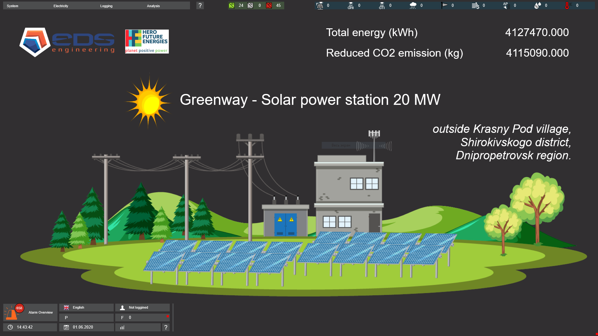 В якості автоматизованої системи диспетчерського керування на кожній станції було використано SCADA zenon зі стандартизованим проектним рішенням СЕС серії "SunPro", яке забезпечує розширену функціональність керування станцією, з поглибленим аналізом та інформуванням чергового персоналу.