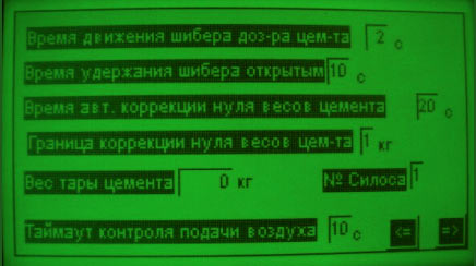 Сенсорний пульт керування (технологічні параметри дозатора цементу)