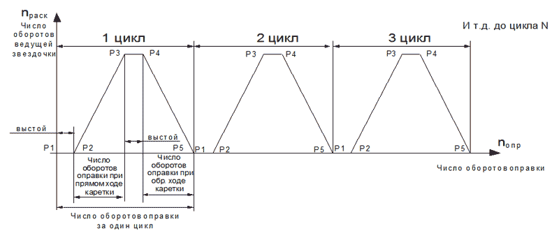 Процес пересування ниткоукладача відбувається вздовж обертової з постійною швидкістю оправки відповідно до циклограми (рис.1).