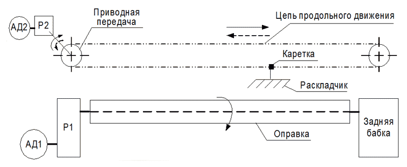 Устаткування з виробництва склопластикових труб є установкою (рис. 2), що складається з приводу обертання оправки і приводу лінійного переміщення ниткоукладача. Приводи керуються програмовним логічним контролером (ПЛК).