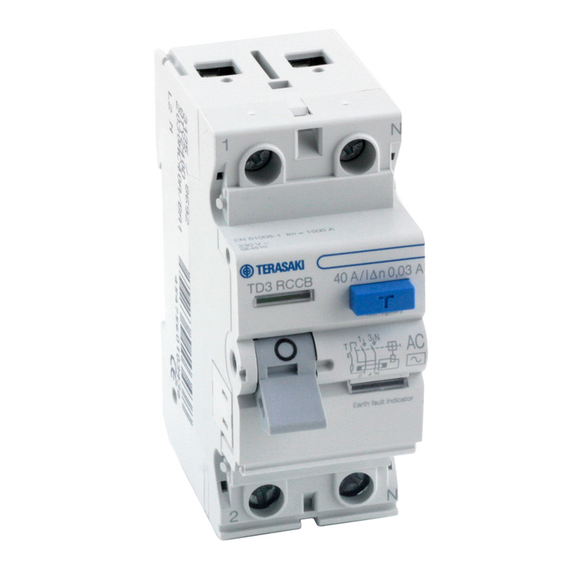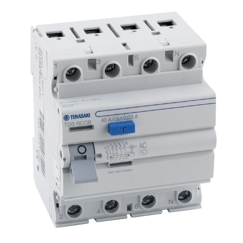 Модульні вимикачі Terasaki серій RCBO і RCCB з лінійки TemDin 3 з диференційним захистом типу АС, розраховані на струм від 25 до 100 А, призначені для захисту від синусоїдальної складової струму витоку. Рекомендовані для застосування у побутових та адміністративних мережах.
