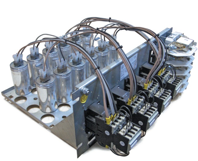 Опис | Комплектные шасси для установок компенсации реактивной мощности состоят из монтажной пластины, конденсаторов для коммутации ступеней и защитных предохранителей. |