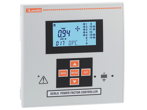 Контролери Lovato Electric серії DCR… використовуються для автоматичного корегування коефіціента потужності (компенсації реактивної енергії) шляхом підключення конденсаторів.