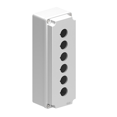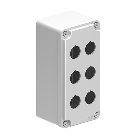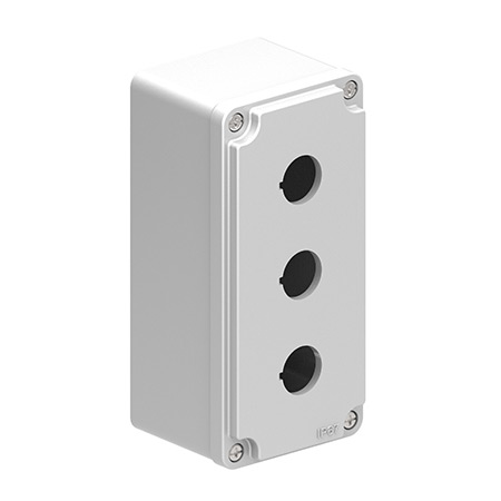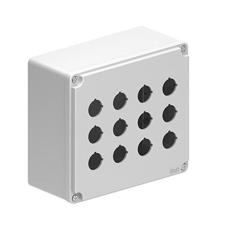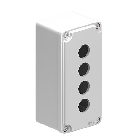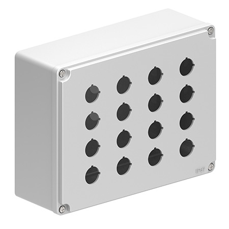 LOVATO Electric пропонує як готові стаціонарні (закріплювані) пульти з 1, 2 або 3 кнопками, так і порожні корпуси для таких пультів, які не комплектуються кнопками або перемикачами – їх можна замовити окремо на свій вибір і встановити самостійно. Такі корпуси є пластикові й металеві, з різною кількістю (від 1 до 16) отворів діаметром 22 мм під кнопки або взагалі без отворів, що дає можливість розміщення елементів керування нестандартного типорозміру або у нестандартному порядку.