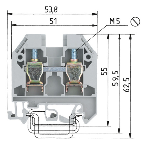 Опис | Проходная клемма, с винтовой фиксацией на DIN рейку, открытая |