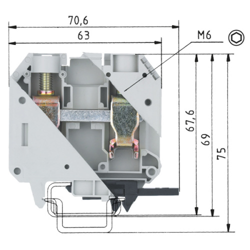 Опис | Проходная клемма, с винтовой фиксацией на DIN рейку, открытая |
