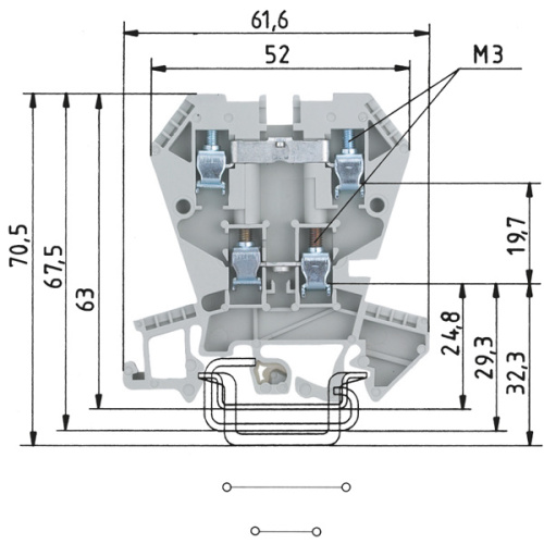 Опис | Этажная клемма, с винтовой фиксацией на DIN рейку, открытая |