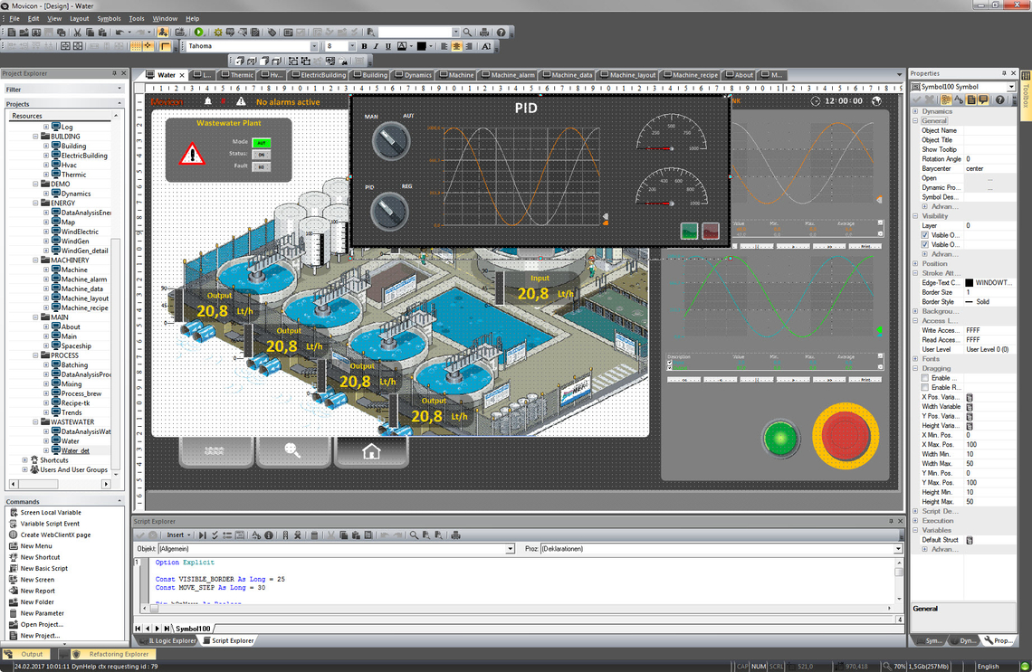 Програмування ПЛК MICRO, SLIO, Touch Panels, smartPanel та Panel-PC Конфігурування мереж PROFIBUS / PROFINET / EtherCAT Інтегрований SVG-едитор (Web-візуалізація) Разработка проекта визуализации на SCADA Movicon 11 |