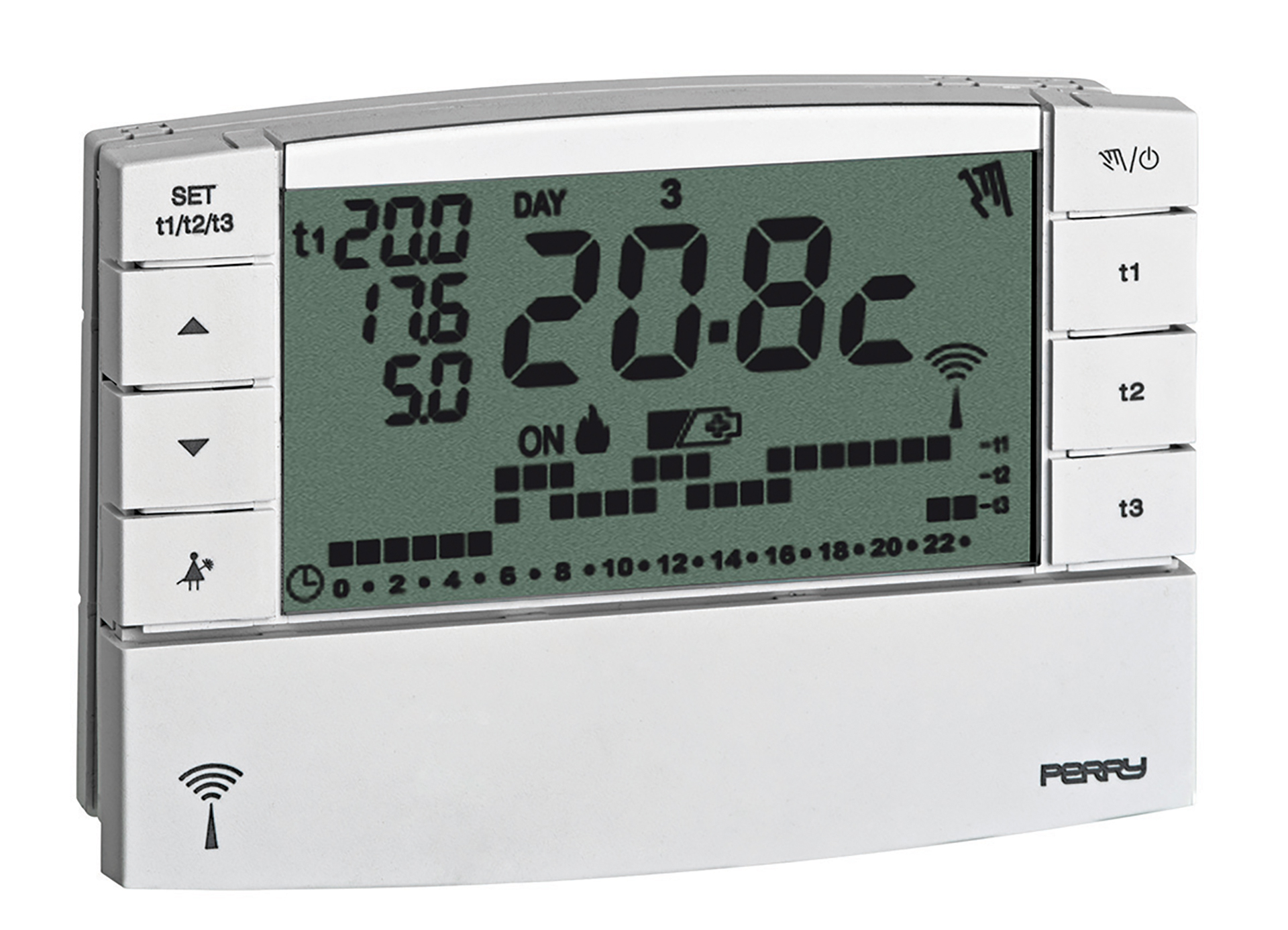 | TX TETX03 | Електронний термостат з радіопередачею для контролю температури в кожному приміщенні. Може виступати як slave для CRTX05. Перемикання зима/літо, індикація стану виходу, заряду батареї. Діапазон регулювання 5–30 °С. Живлення 3 В від батарейки. Діапазон роботи сигналу 30–130 м |