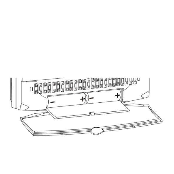 Кнопки для вибору дня тижня (окрема кнопка для кожного дня) і додаткоіих функцій; під кришкою – кнопки вибору температури для кожної години і батарейний відсік)