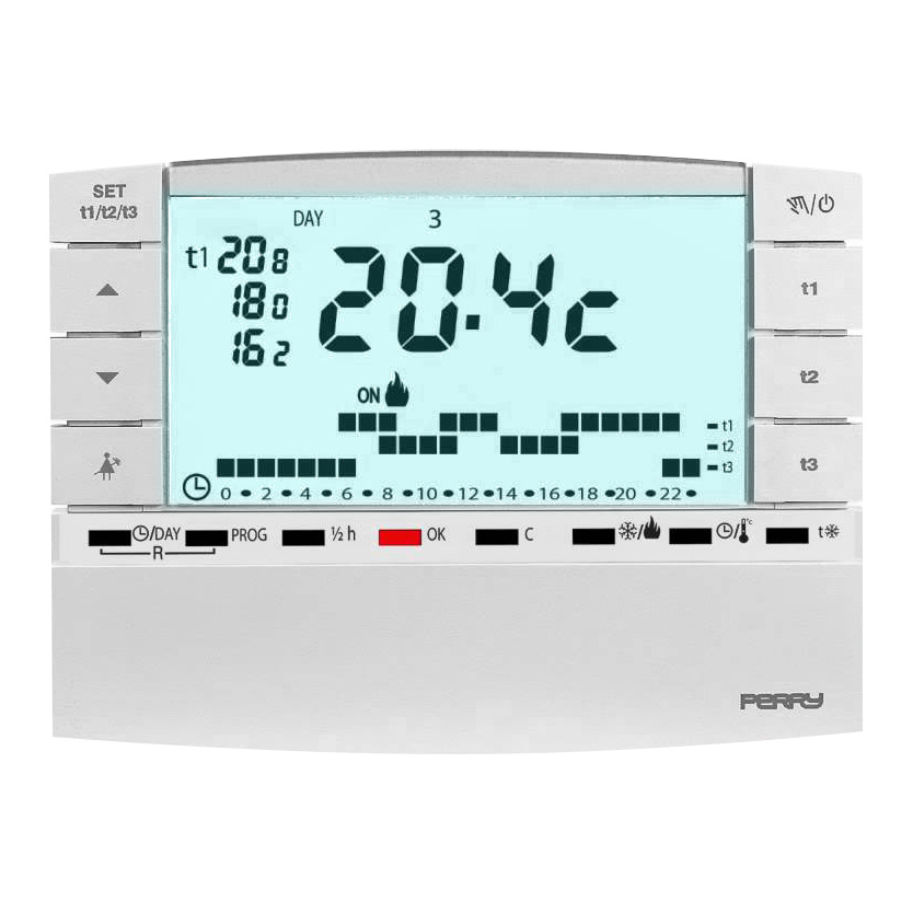 Призначений для автоматичного регулювання температури у приміщенні згідно з заданою програмою на кожен день тижня. Ця модель є аналогом CR022B, але живиться від мережі змінного струму 230 В і має дисплей з підсвічуванням.