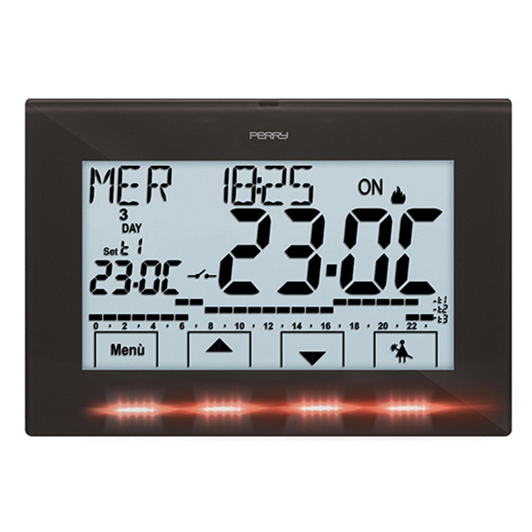 Ця модель конструктивно і програмно аналогічна моделі CR028, але, на відміну від неї, працює від мережі змінного струму 230 В і не має можливості підключення зовнішнього датчика температури. Ще одна відмінність – цей термостат може сигналізувати про економний, нормальний або підвищений рівень споживання електроенергії підключеними виконавчими пристроями за допомогою підсвічування кнопок керування різними кольорами.