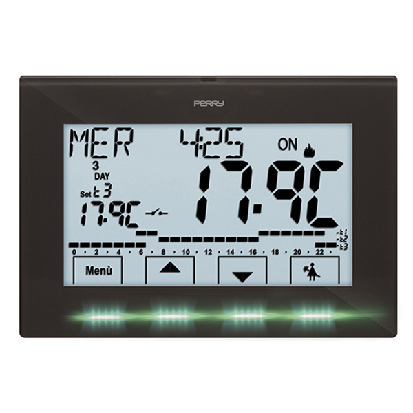 Кнопки керування підсвічуються одним з трьох кольорів залежно від запрограмованої температури, символізуючи рівень споживання електроенергії підключеним нагрівачем або охолоджувачем. При цьому термостат не вимірює безпосередньо споживання енергії. Налаштування підсвічування різняться для режимій «зима» і «літо». Докладніше читайте в інструкції.