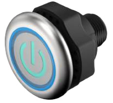 Круглі кнопки серії 04 мають пластиковий корпус і фронтальну рамку з анодованого алюмінію.