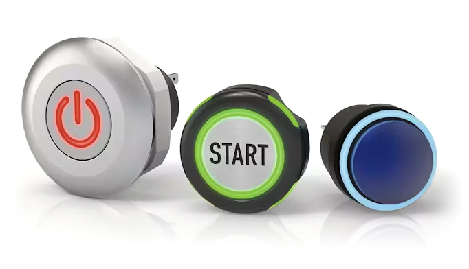 Кнопки серії 61 конструктивно і візуально нагадують кнопки серії 18 – моделі з плоским дизайном мають спільний актуатор, на якому базуються кнопки різної форми і різних розмірів, а моделі з виступним дизайном мають фронтальну рамку, інтегровану з актуатором, отже, не уніфіковані. Актуатор у всіх моделей пластиковий. На відміну від 18-ї серії, контактний блок тут відокремлений, може бути з різною кількістю і типом контактів і замовляється додатково. Щоб отримати версію кнопки з підсвічуванням, замовляйте прозору лінзу потрібного кольору і світлодіодну лампу.