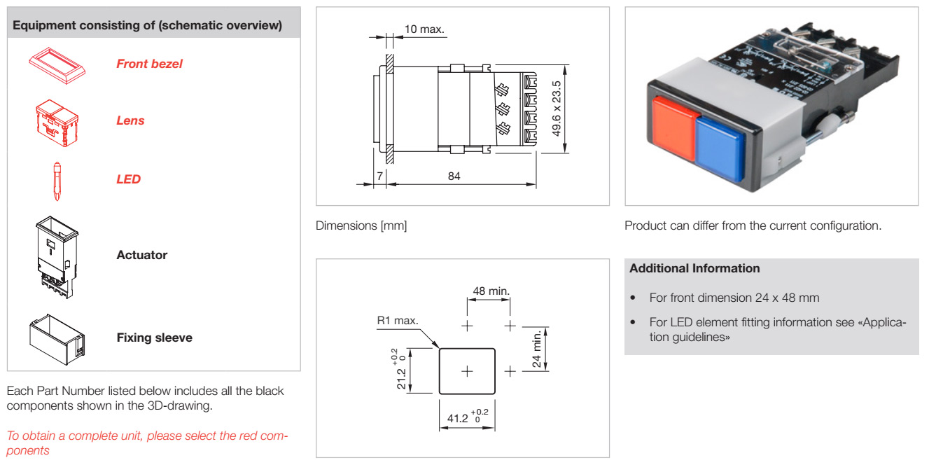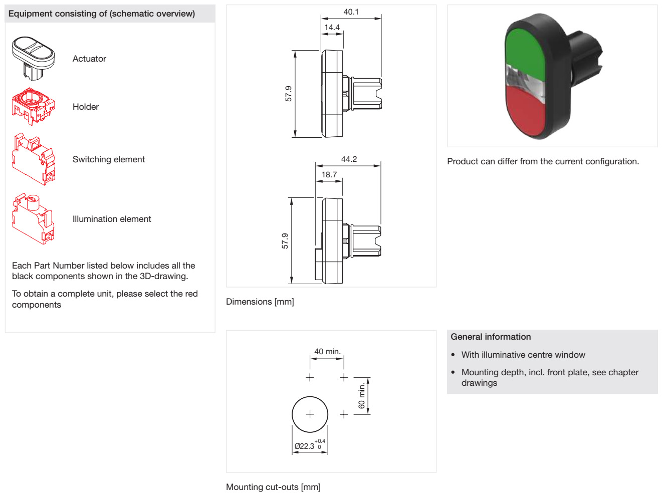 Поєднують 2 кнопки з можливістю підсвічування в одному корпусі, якому потрібен лише один монтажний отвір на панелі керування. Пропонуються лише у двох серіях EAO – 03 і 45.