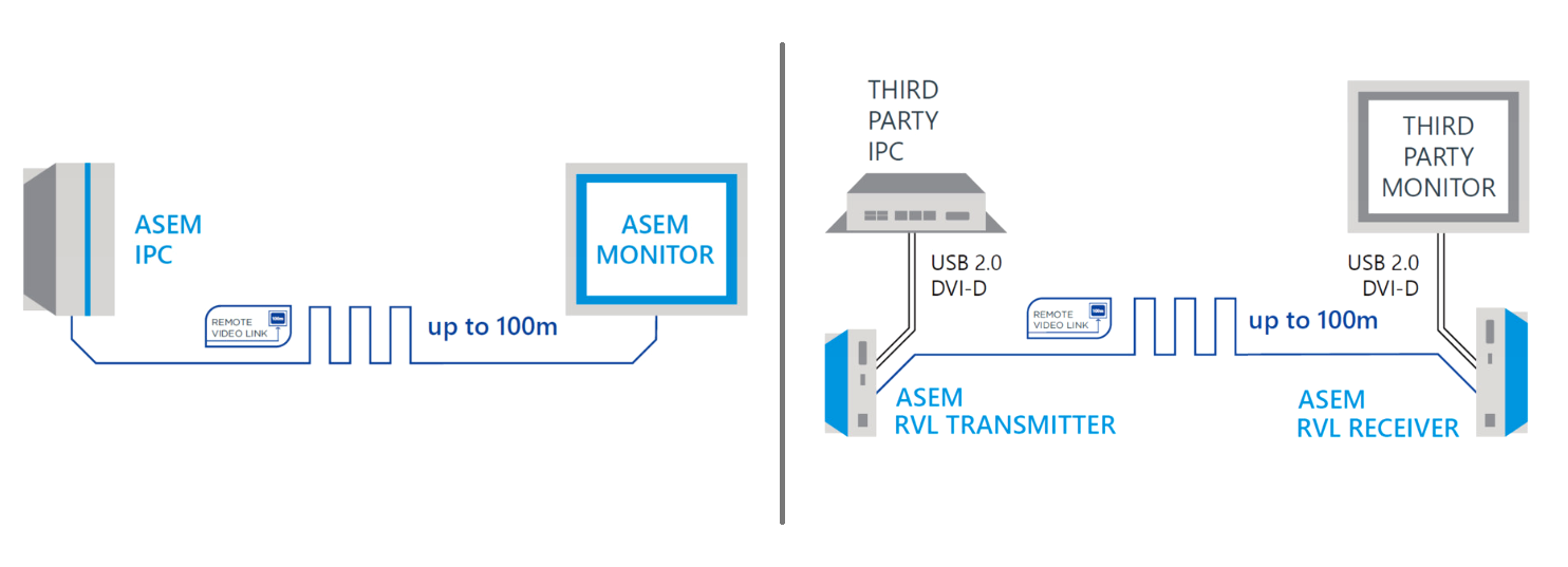 Вбудована технологія Remote Video Link (RVL) дозволяє передавати сигнали DVI-D та USB 2.0 на відстань до 100 метрів (в комплекті зі спеціальними кабелями).