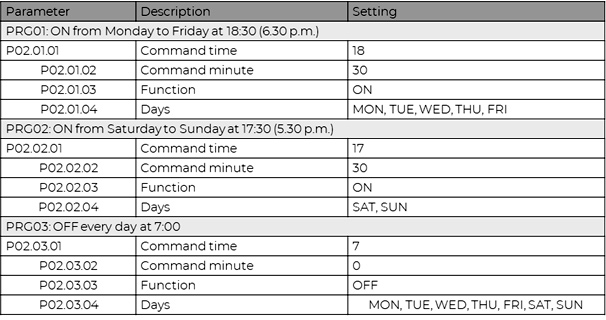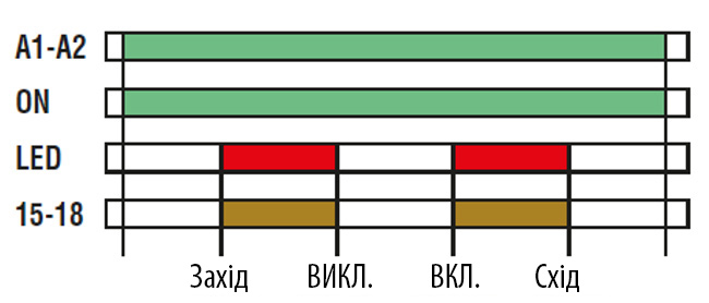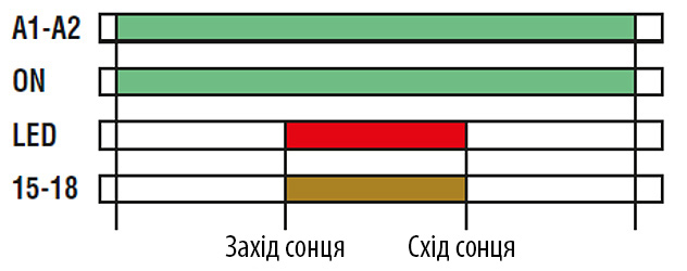 Використовується для автоматичного увімкнення/вимкнення освітлення та інших електроприладів у певний час доби. Можливе налаштування індивідуальних програм для робочих/вихідних днів або на кожен день тижня.