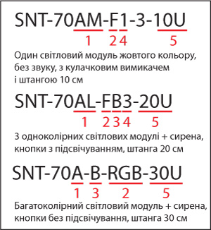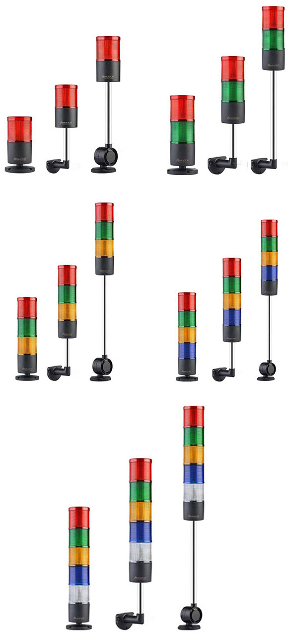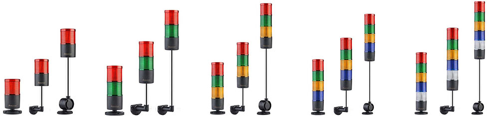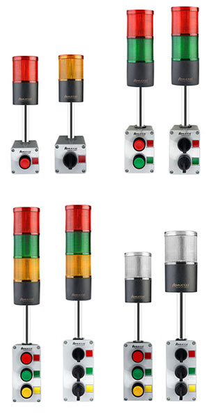 Також доступні модифікації 1-, 2- і 3-колірних колон (а також колони з багатоколірним RGB-світлодіодом) з блоком ручного керування Andon Kit Stack Lights, оснащеним кнопками, кнопками з підсвічуванням або поворотними (кулачковими) вимикачами.