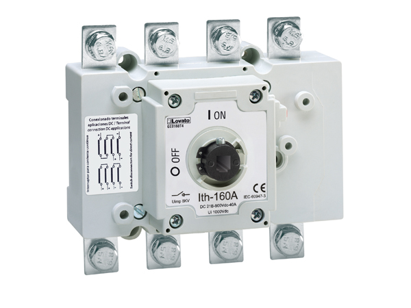 LOVATO Electric виробляє вимикачі навантаження для постійного струму з використанням в фотоелектричній галузі для напруги до 1500 В.