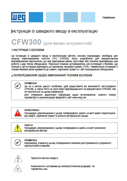 Дата виходу: 2023 р.Перетворювач частоти WEG CFW300. Інструкція з експлуатації