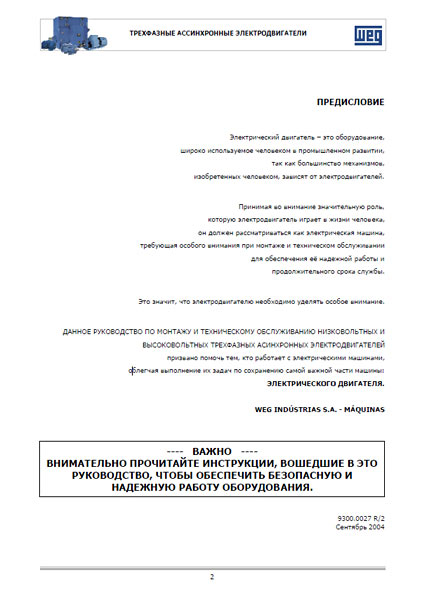 Дата виходу: 2011 г.Інструкція з встановлення та технічного обслуговування електродвигунів WEG