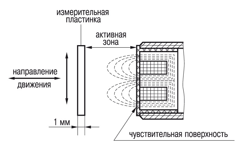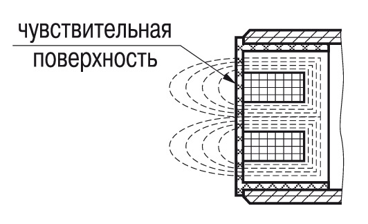 Чувствительная поверхность - это площадка, ограниченная наружным диаметром ферритового сердечника, на котором собрана электромагнитная система датчика. Диаметр этой поверхности приблизительно равен диаметру датчика.