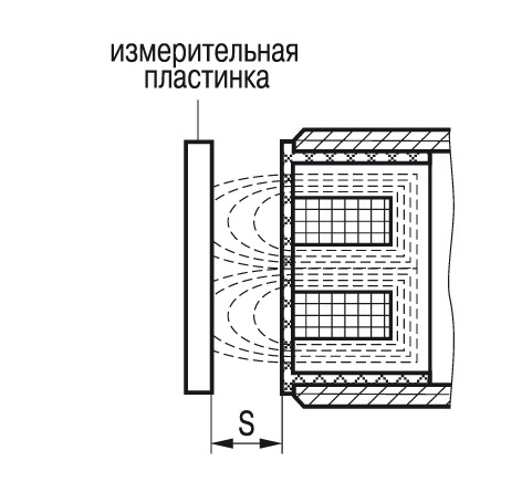 Бесконтактный выключатель обеспечивает функцию замыкающего контакта при появлении в активной зоне измерительной пластинки (в исходном состоянии нагрузка отключена).