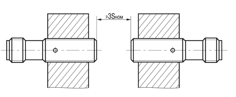 Бесконтактные выключатели могут быть расположены встречно друг к другу, при этом расстояние между активными поверхностями должно быть более 3Sном.