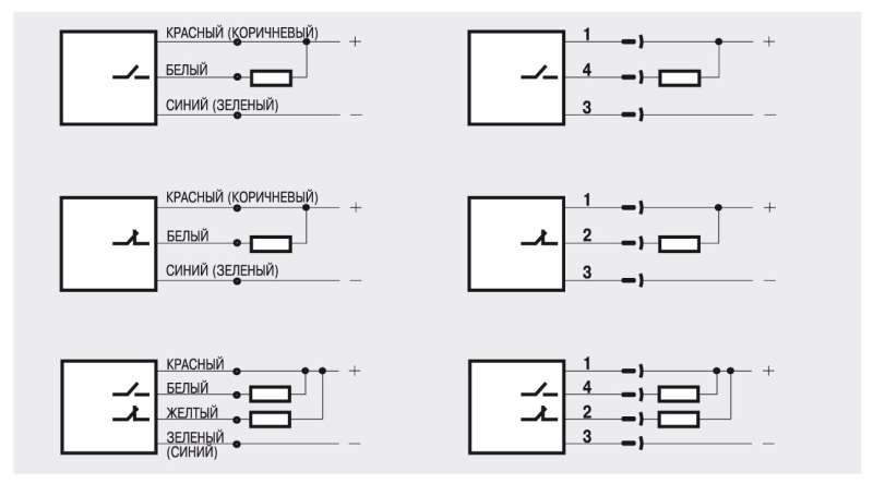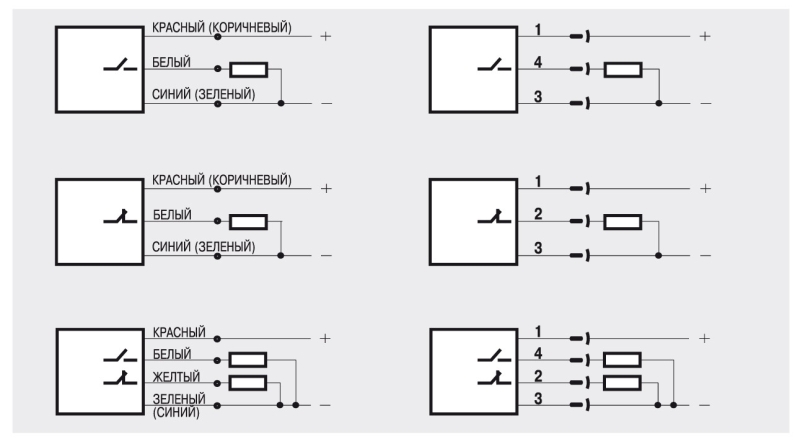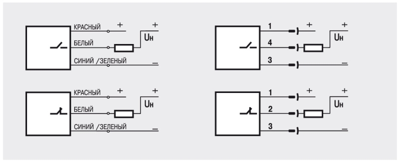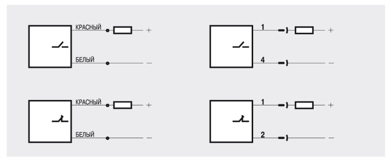 Бесконтактный выключатель одновременно обеспечивает функцию замыкающего и размыкающего контактов.