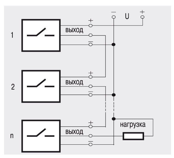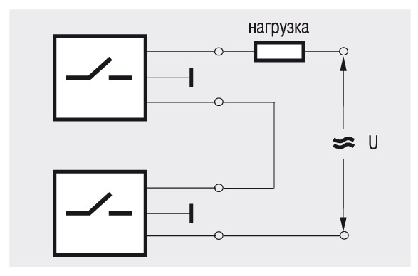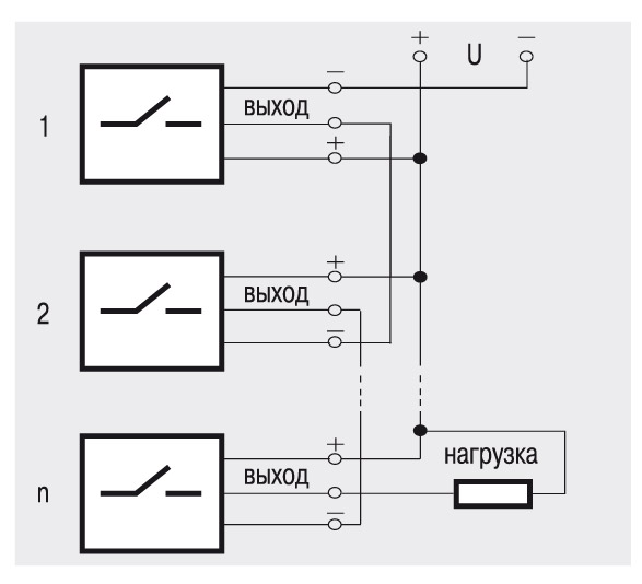 Параллельное соединение бесконтактных выключателей переменного напряжения не рекомендуется, так как в связи с нарастанием колебаний генератора могут появляться ошибочные импульсы.