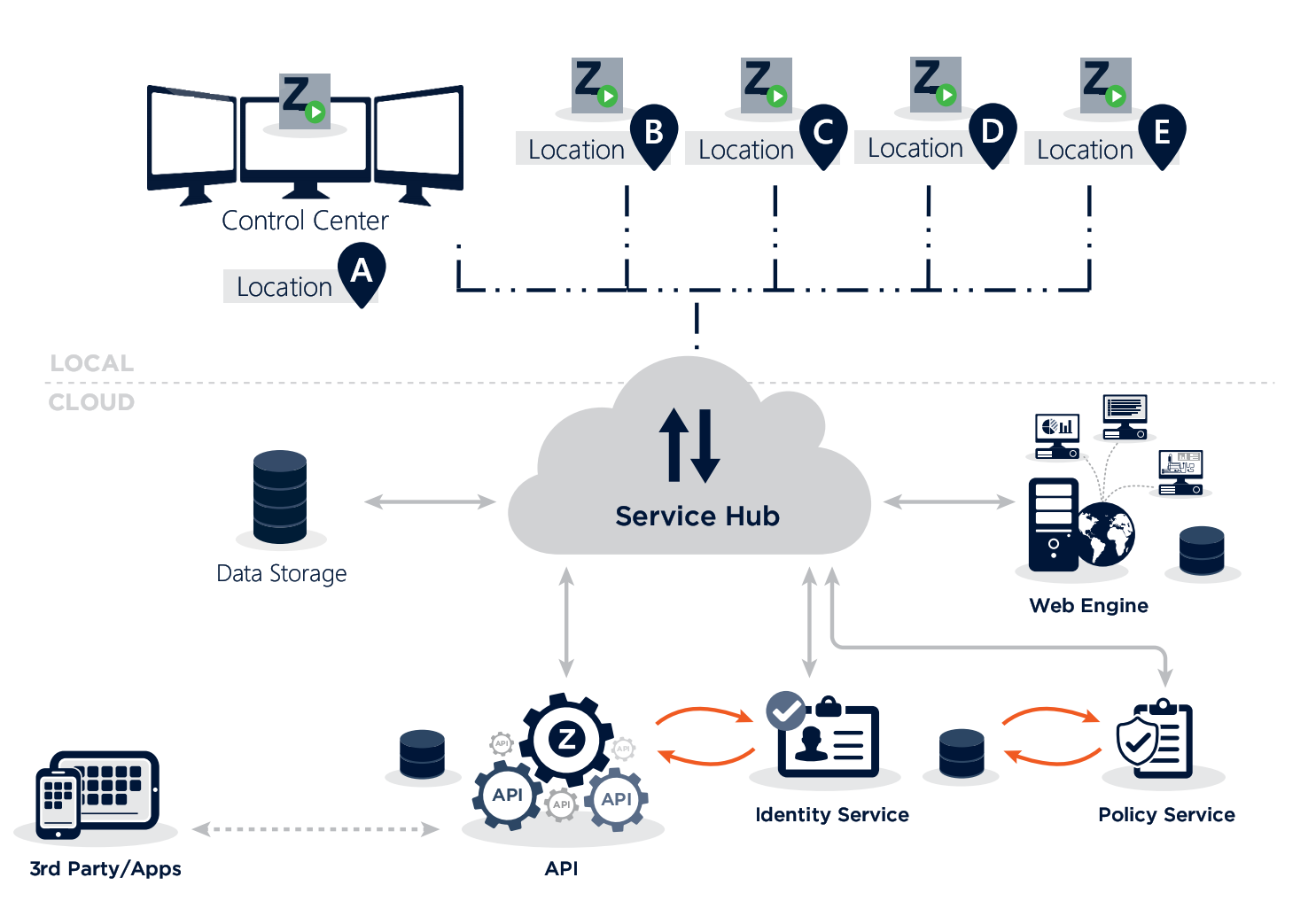 Архітектура Service Grid передбачає розгортання розподіленої системи з центром в Service Hub, який знаходиться в хмарі. Таким чином усі компоненти системи мають двосторонній доступ до даних одне одного, в той же час залишаючись повністю автономними. Також тепер відкрилась можливість швидкого та гнучкого хмарного запуску zenon. З цією метою до послуг користувачів такі популярні технології, як Docker чи Kubernetes.