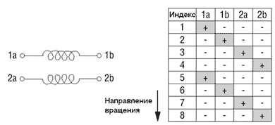 Различают два вида коммутации обмотки шагового двигателя: симметричная и несимметричная.