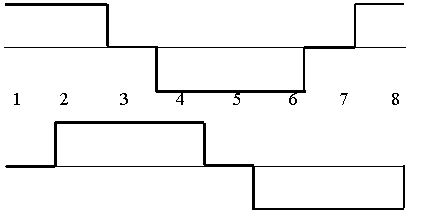 Число тактов КТ системы управления называют количеством состояний коммутатора на периоде его работы T. Как видно из рисунков для симметричной системы управления КТ =4, а для несимметричной КТ =8.