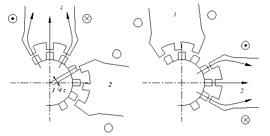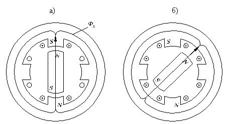 Если зубцы ротора соосны с одной диаметрально расположенной парой полюсов статора, то они сдвинуты относительно каждой из оставшихся трех пар полюсов статора соответственно на ј, Ѕ и ѕ зубцового деления.