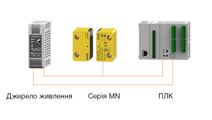Пристрої серії MN використовують магнітний сенсор для визначення закритого або відкритого стану дверей. Вимикачі цього типу можна встановлювати в будь-якому монтажному положенні.