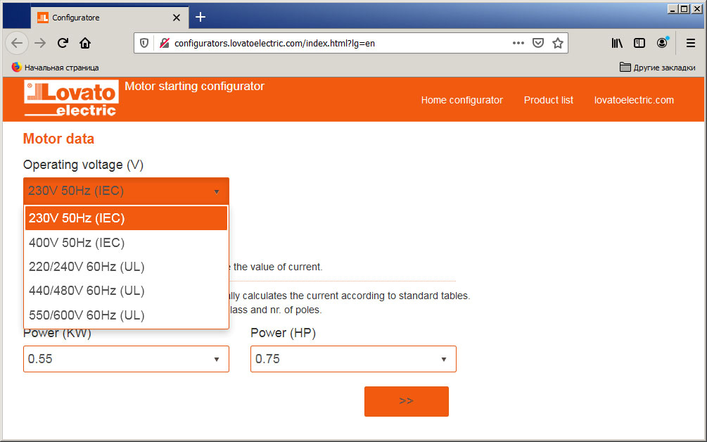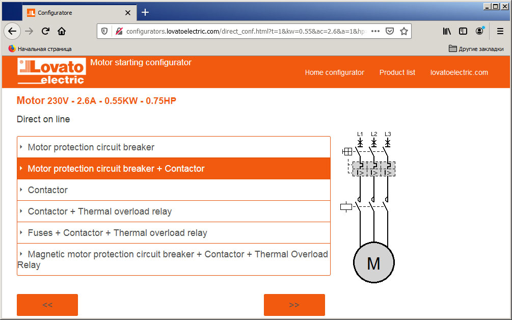 Компанія LOVATO Electric розробила конфігуратор для точного і швидкого підбору обладнання для підключення асинхронних двигунів. Для цого подрібно лише ввести номінальні дані (потужність, струм, напругу) двигуна.