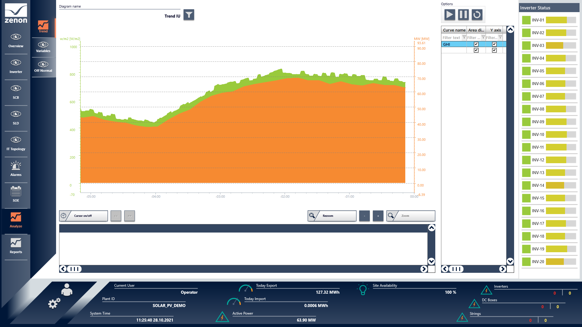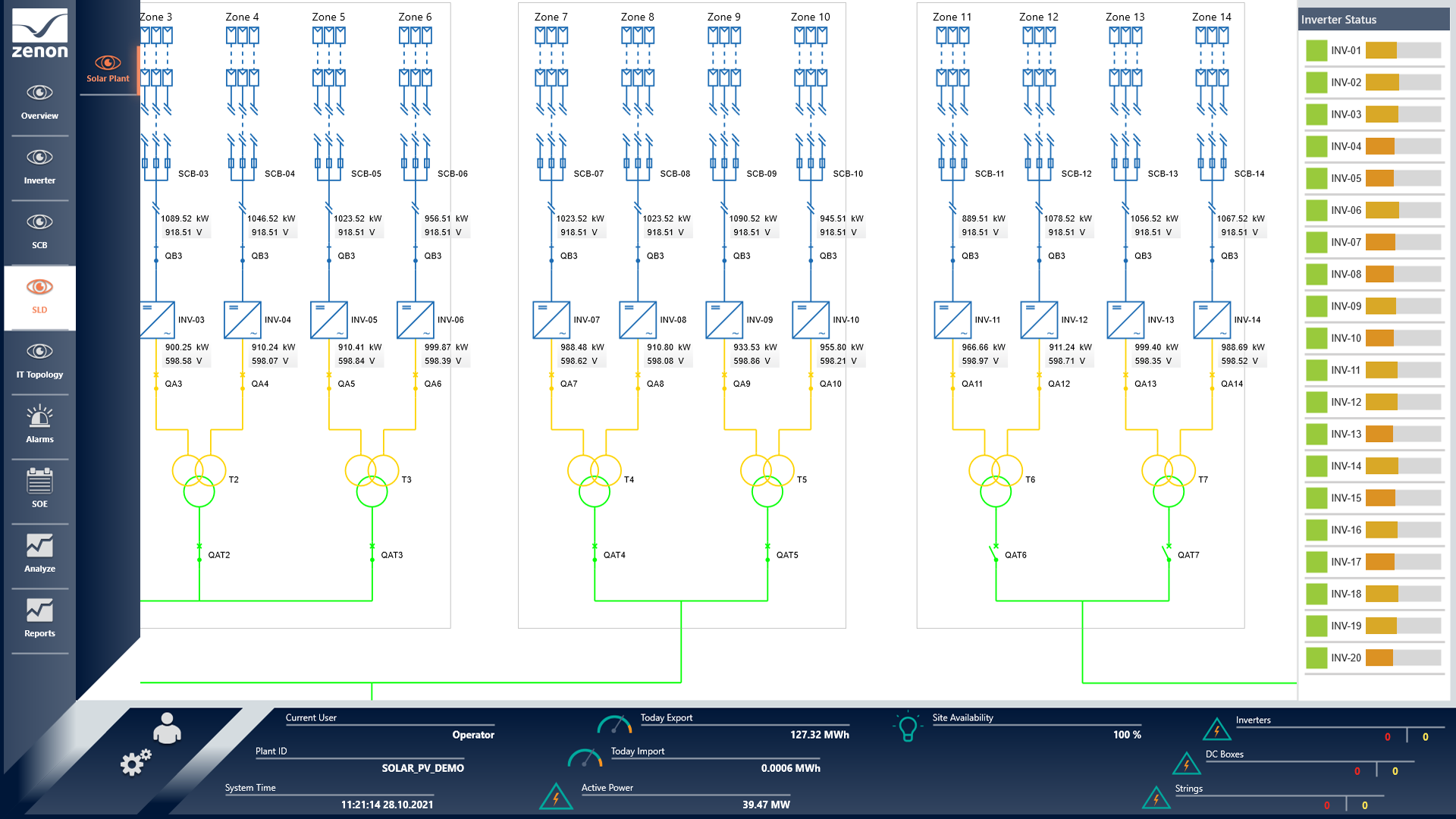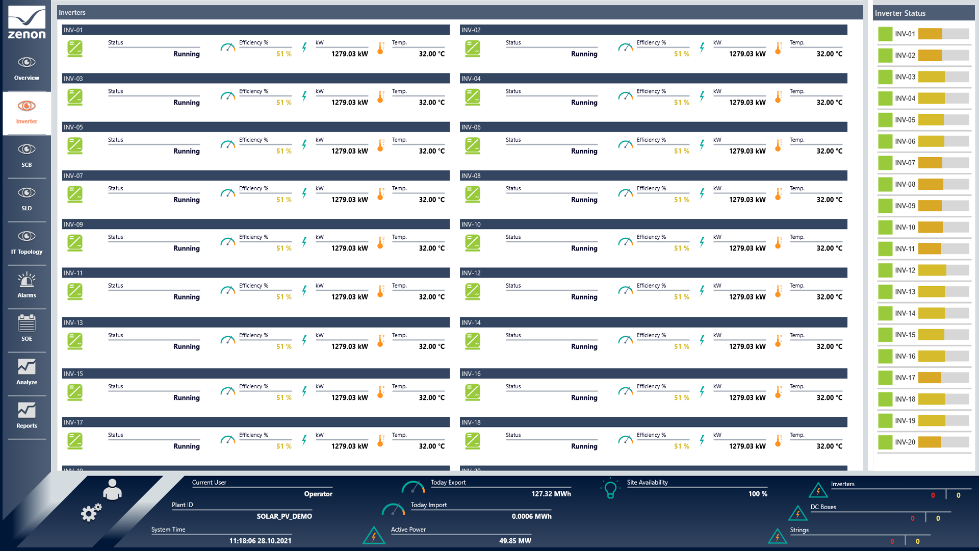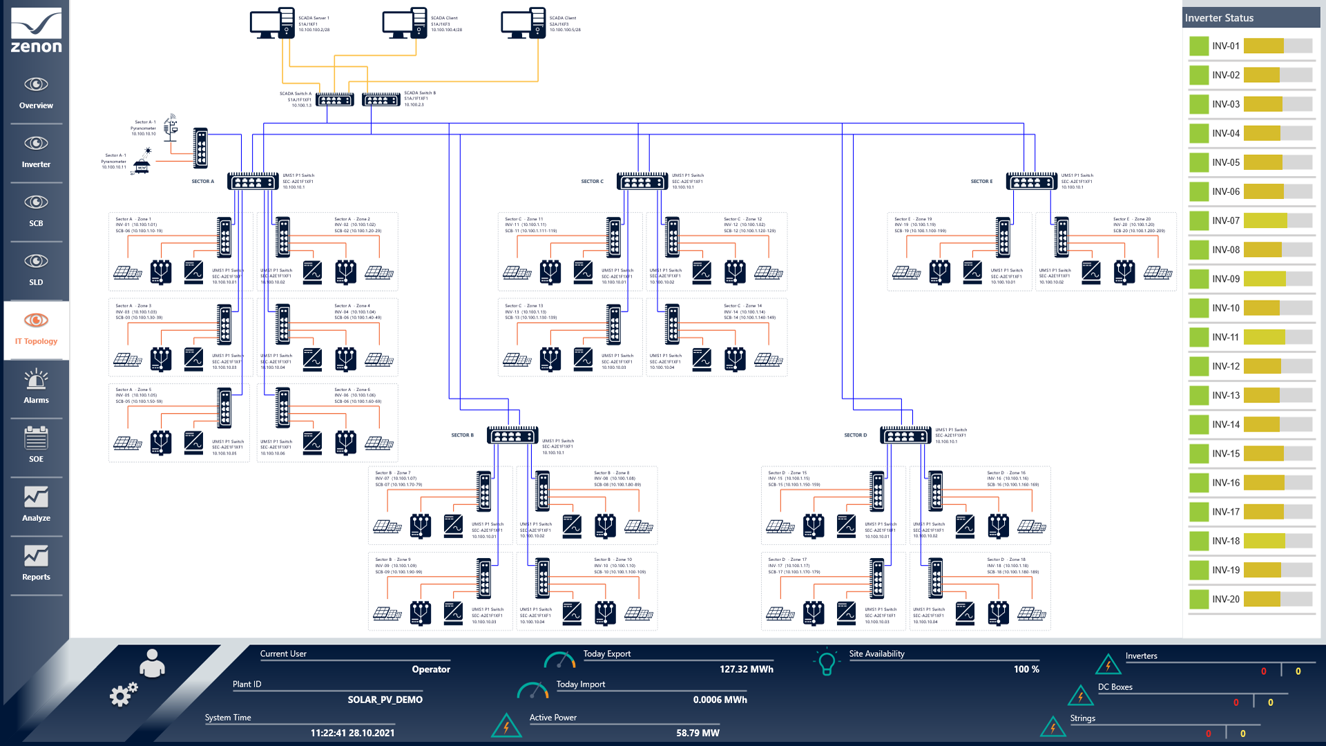 Якщо раніше Ви не мали досвіду роботи зі SCADA zenon – це не проблема. Для перегляду проекту не потрібні спеціальні технічні знання. Достатньо встановити систему та імпортувати проект. В разі зацікавленості пропозицією прохання подати заявку з поміткою «Демонстраційний проект диспетчерського керування сонячною станцією».