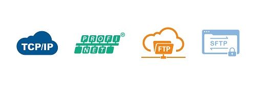 Залежно від моделі, підтримуються такі протоколи зв’язку, як TCP/IP, PROFINET, FTP, а також SFTP (протокол безпечної передачі файлів). Завдяки підключенню до ПЛК значно спрощується обмін даними та керування пристроєм. Також передбачені цифрові входи та виходи, які дозволяють безпосередньо керувати простими процесами.