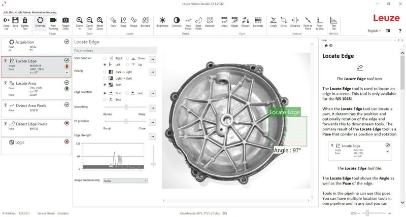 Програмне забезпечення Leuze Vision Studio має потужні інструменти для обробки та перевірки зображень, для роботи яких не обов’язкове підключення до мережі Internet. Простий користувацький інтерфейс дозволяє здійснювати налаштування без спеціальної підготовки або знань. Датчики Simple Vision можна використовувати для широкого спектру промислових задач: