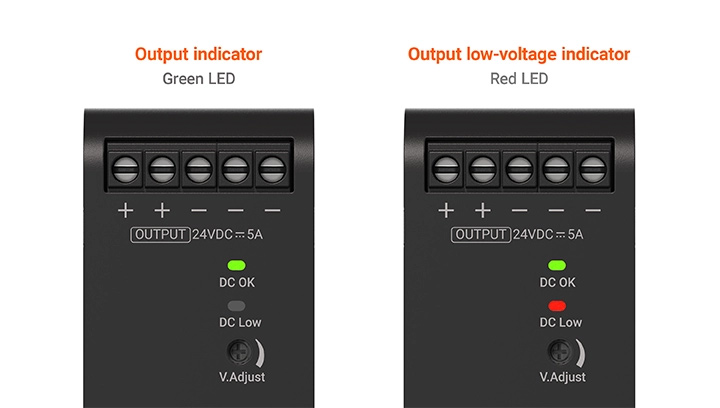 Користувачі можуть легко перевірити робочий стан за допомогою індикатора низької напруги на виході (червоний світлодіод) та індикатора виходу (зелений світлодіод).