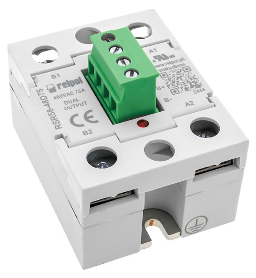 Модель RSR58 спроєктована для ефективного та безпечного керування двома незалежними навантаженнями змінного струму, що робить її ідеальним рішенням для застосувань з високим струмовим навантаженням — від харчової та хімічної промисловості до систем опалення, вентиляції, кондиціонування повітря (HVAC) та освітлення.
