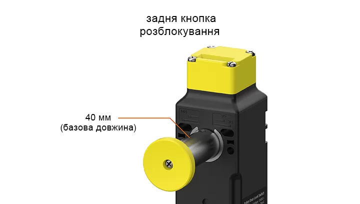 Користувач може забезпечити безпеку, використовуючи ключ розблокування для відкриття дверей у разі знеструмлення або аварійної ситуації. Модель SFDL пропонує хрестоподібні та спеціальні типи ключів для різних умов експлуатації. Базова довжина задньої кнопки розблокування становить 40 мм, а за допомогою подовжувача (продається окремо) її можна збільшити до 70 мм або 100 мм.