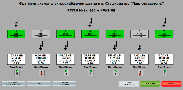 Также был создан "Стенд семисегментного индикатора", который подключается к дискретным входам/выходам контроллера. Установка предназначена для получения базовых знаний по разработке программного обеспечения ПЛК VIPA на основе комбинационных автоматов и связи SCADA системы zenon с ПЛК VIPA при помощи интерфейса Ethernet.