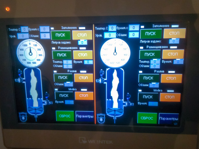 - шафи керування (ПЛК, Сенсорна панель, Частотний перетворювач для керування міксером),
